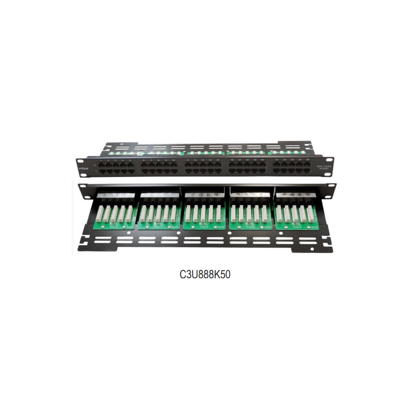19” unshielded telephone patch panel, Cat. 3, 50 ports, krone IDC, black, 1U |